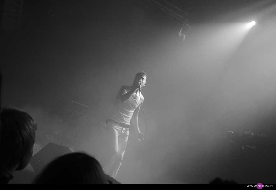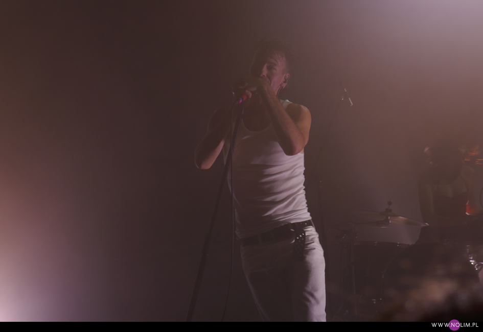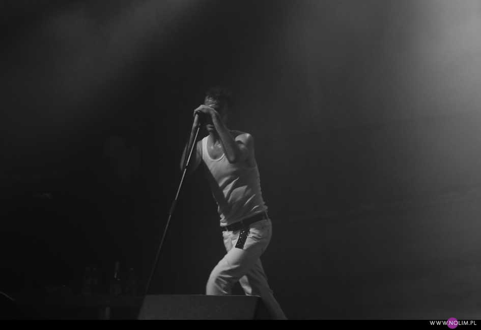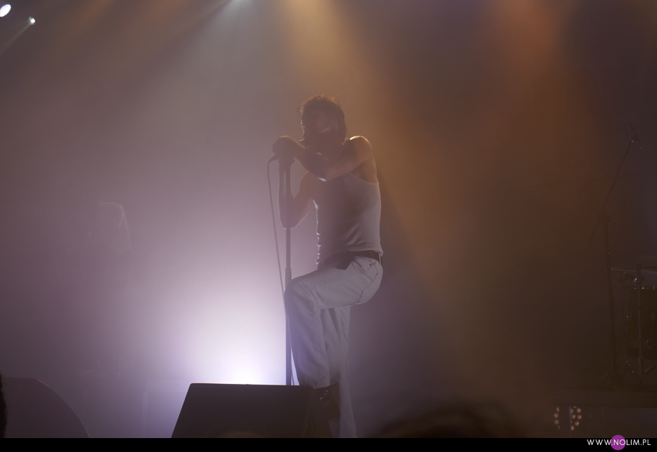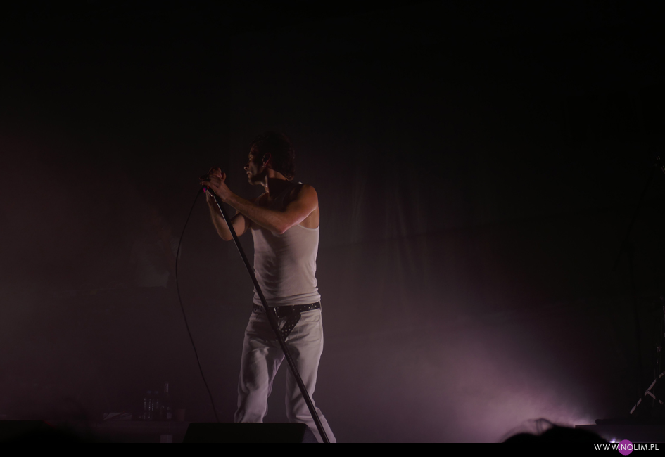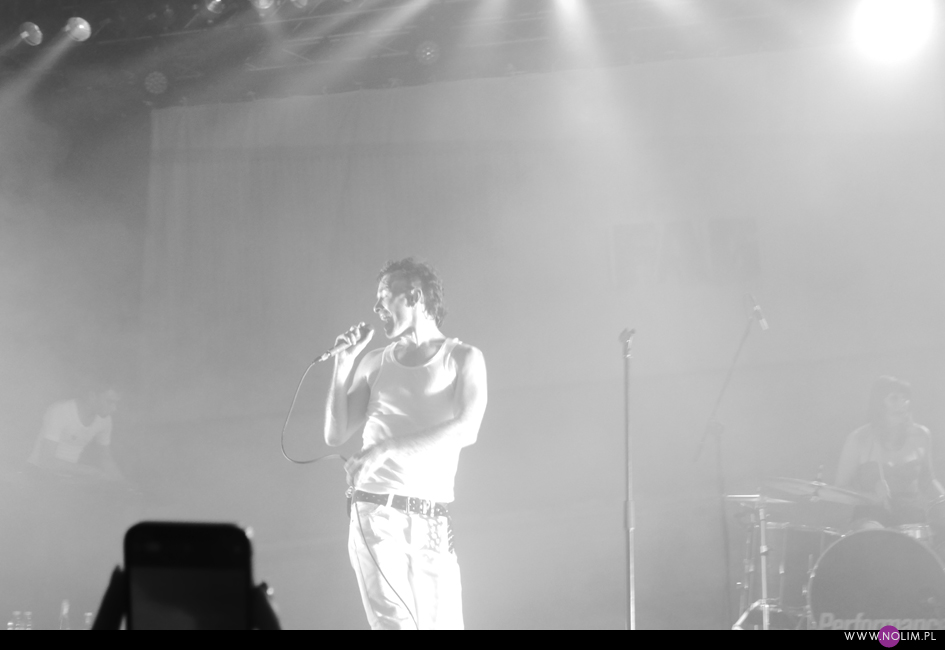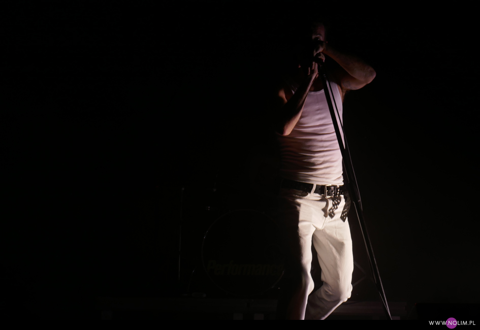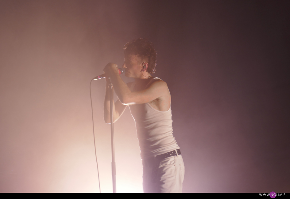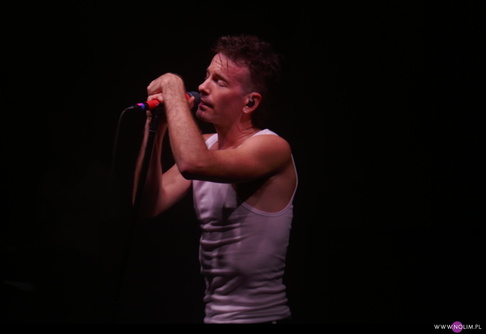 Nigdy nie oglądałam żadnego występu TR/ST, więc nie wiedziałam czego się spodziewać, ale gdy tylko Robert pojawił się na scenie wiedziałam, że będzie dobrze. Chociaż źle powiedziałam. On się nie “pojawił”, a raczej “wyskoczył” w takt dźwięków “Regret”. A potem nie zatrzymał się już ani na chwilę. Był w nieustającym ruchu. Nie był to klasyczny taniec, w którym trzeba tupnąć nogą czy klasnąć w rytm, ale raczej takie rzucanie się po scenie, chodzenie, falowanie, jakieś takie ruchowe ADHD. Jakby nie był w stanie ustać w miejscu przy mikrofonie. Dla mnie miód malina, bo uwielbiam gdy na scenie jest ruch. A jednocześnie nie miało to żadnego wpływu na śpiew. Robert na żywo brzmi dokładnie tak, jak na płytach. Jego głos jest wręcz nierzeczywisty. A gdy kilka razy się odezwał, to faktycznie brzmi tak samo. Nie mówił jednak zbyt wiele, dosłownie kilka słów w czasie całego koncertu. Ale mimo tej całej ruchliwości miałam wrażenie, że jest dość zamknięty w sobie. To nie Chris Corner, którego można obmacywać podczas występu. Myślę, że gdyby Robert śpiewał tylko dla siebie, to jego ekspresja byłaby dokładnie taka sama. To nie jest show skrojone pod publiczność, on się tak naprawdę zachowuje, bo tak czuje muzykę. A przynajmniej takie było moje odczucie.