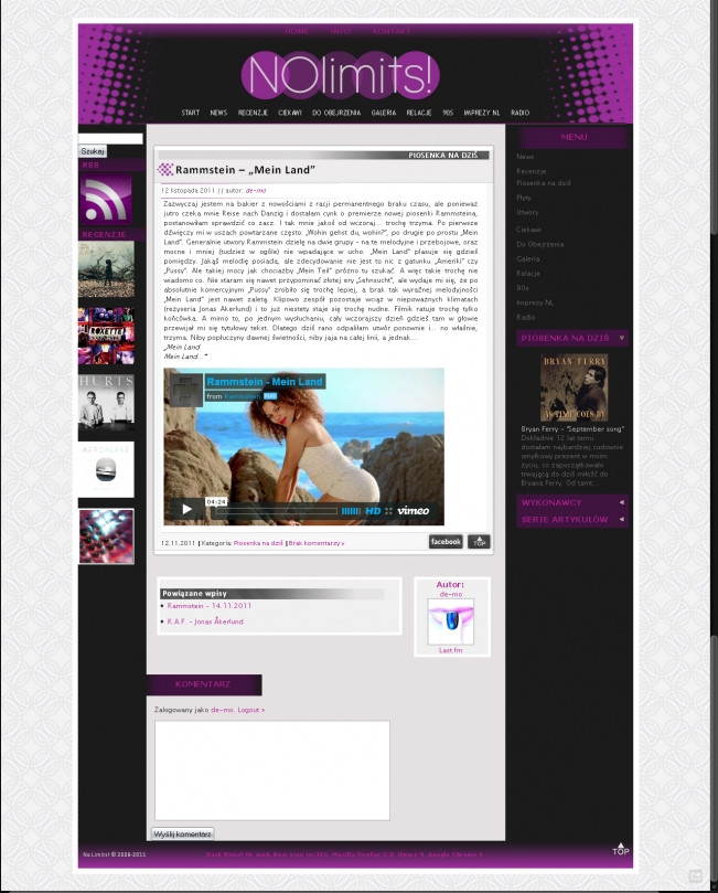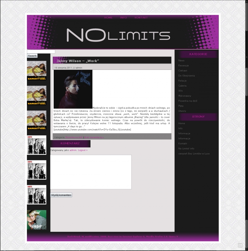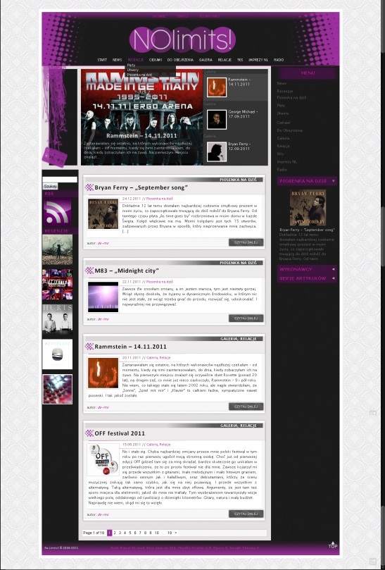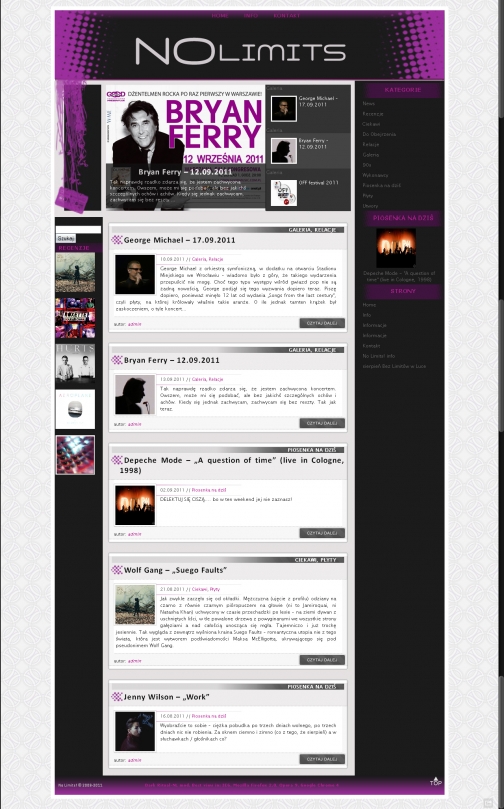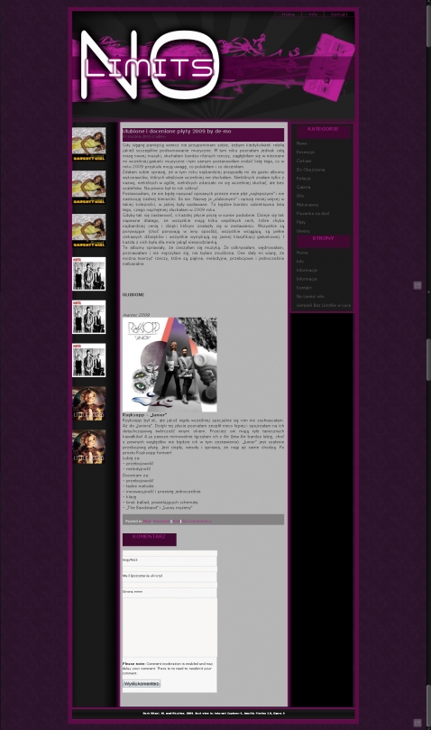 Towarzyszy nam codziennie, w domu, w pracy, w podróży, w komunikacji miejskiej, czasem nawet podczas snu. Potrafi wpłynąć na to, jak postrzegamy świat, pewne miejsca, pewne wydarzenia. Kojarzy się z pewnymi wspomnieniami. To, jakiej muzyki słuchamy, często zależy od tego, jak się czujemy. A i nasze samopoczucie potrafi się zmienić dzięki muzyce. Dlatego NoLimits! z czasem staje się coraz bardziej osobiste. To nie tylko strona z recenzjami płyt czy relacjami z koncertów. To muzyczny pamiętnik.